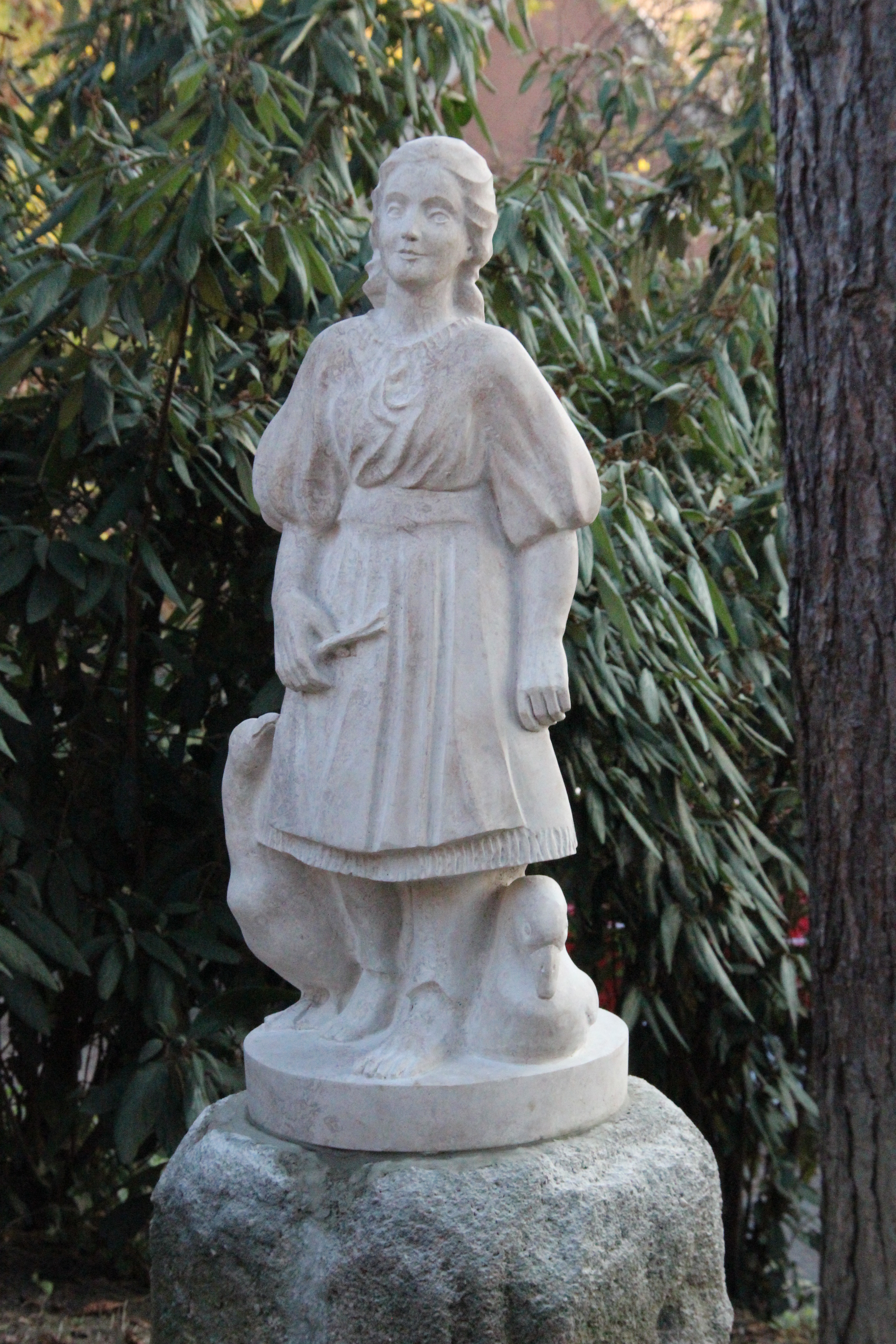 A kolozsvári születésű, majd Venezuelában új életet kezdő szobrászművész, Lőte Éva 1931-ben állította ki a Nemzeti Szalonban a két gipsz-terrakotta szobrot. Volt Baár‒Madas-os növendékeket az alkotások annyira megihlették, hogy szeretett iskolájukban kerestek nekik helyet. Ezt meg is találták. Először annak a téglalapformájú tónak déli sarkainál helyeztették el, amely éppen itt vált az iskolakert díszévé, ahol állunk. Később áthelyezték a mostani pergola alatt kialakított talapzatokra. Volt mellettük egy pad is. Erre ülve a diákok szívesen fényképezkedtek, miközben a két szobor nevet is kapott: Jancsi és Juliska lett. A szobrokat az időjárás viszontagságaitól, a téli időszakban védő burokkal látták el, de a háború viharaiban megsérültek, és a helyreállításukkal senki sem foglalkozott.