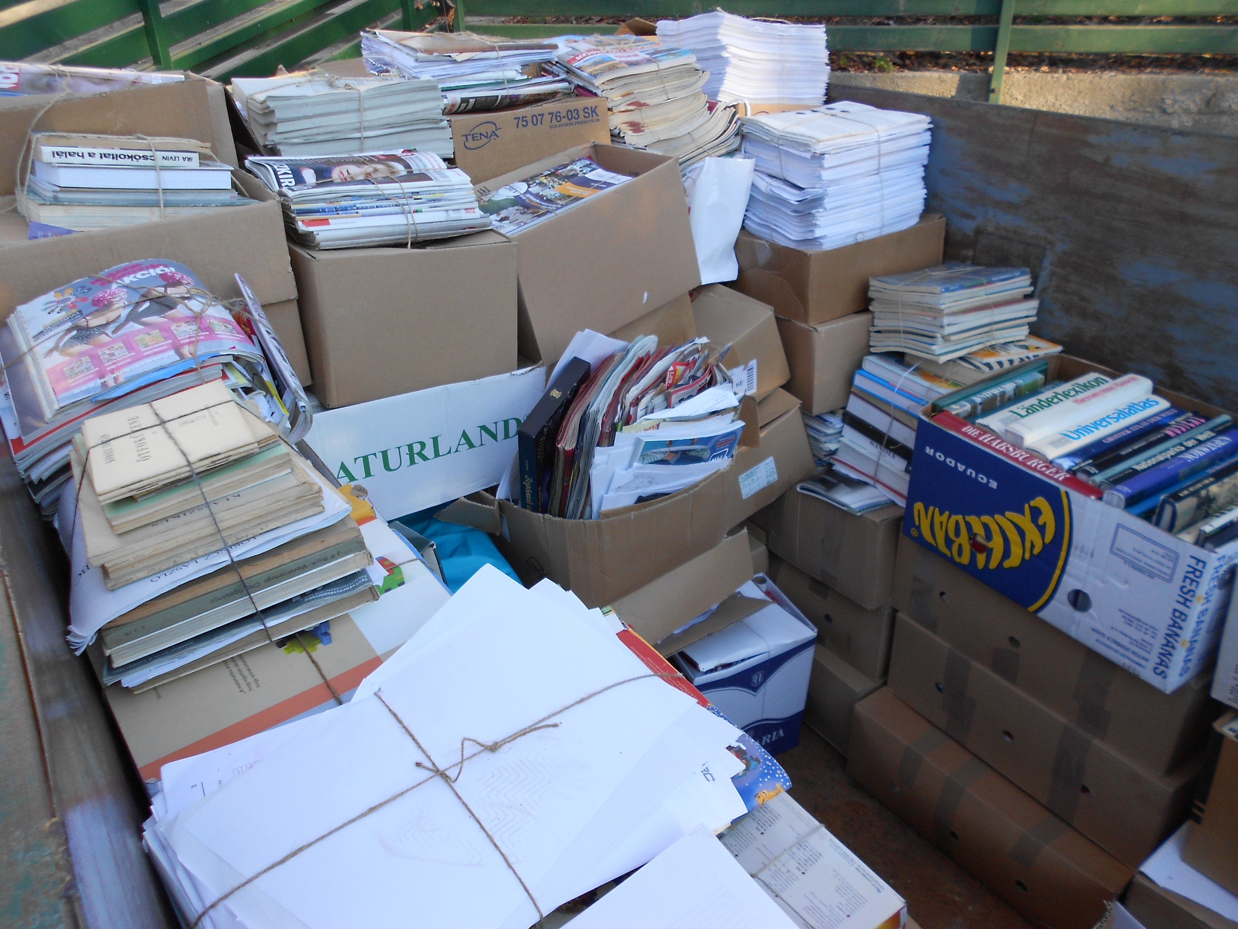 Folytatódott az előző években megfigyelt tendencia, és kevés kivételtől eltekintve szépen kötegelve érkezett a hulladékpapír, így igazi örömet okozott az önkénteseknek a kötegekkel való jenga-zás a mérlegen, és a konténerben való rakodás. A kivételek közül az a kedves szülő lopta be magát leginkább az éppen „szolgálatban lévők” szívébe, aki ömlesztve hozott nyomdai hulladékot, természetesen a műanyag nyomófóliákkal keverve. De javukra szóljon, zokszó nélkül részt vettek a szétválogatásban...