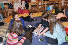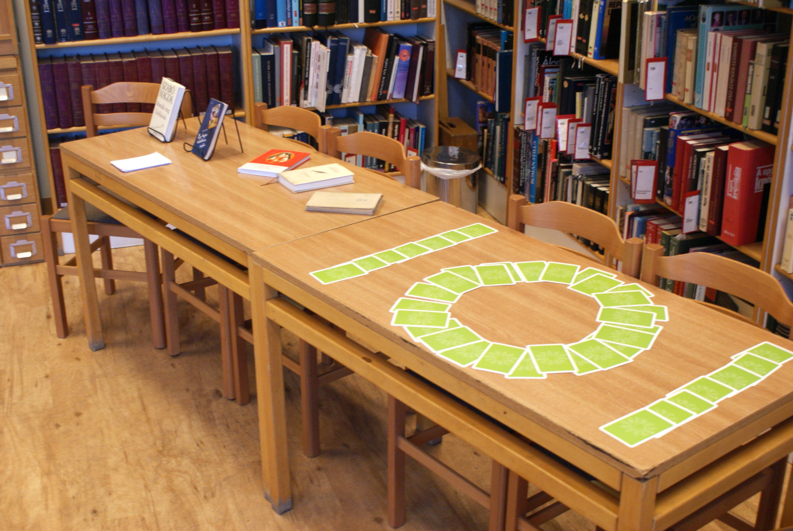 Pénteken 25 elszánt olvasni szerető ember arra szövetkezett, hogy egy különleges éjszakát töltsön együtt a könyvtárban. Néhányan már harmadik alkalommal, egészen sokan másodszor és tízen először vetették be magukat a szivacsokkal bélelt olvasóterembe. Hálózsákkal, kispárnával és egy ajánlandó könyvvel a kezükben érkeztek és széles jókedvvel a lelkükben. Bizonyosak voltak abban, hogy az a hely, ahová naponta nem mindig szívesen látogatnak, napnyugtakor a barátságosabb arcával fordul feléjük. Ismerkedő kör, ajánlások, szavazás és pizza. Hangtalan bolyongás eloltott lámpák mellett a folyosón. Felszabadult, légies balett mozdulatok a sötétben, természetesen zokniban és ijesztgetés… Végül hajnalig tartó olvasás. Szóval minden a megszokottak szerint…