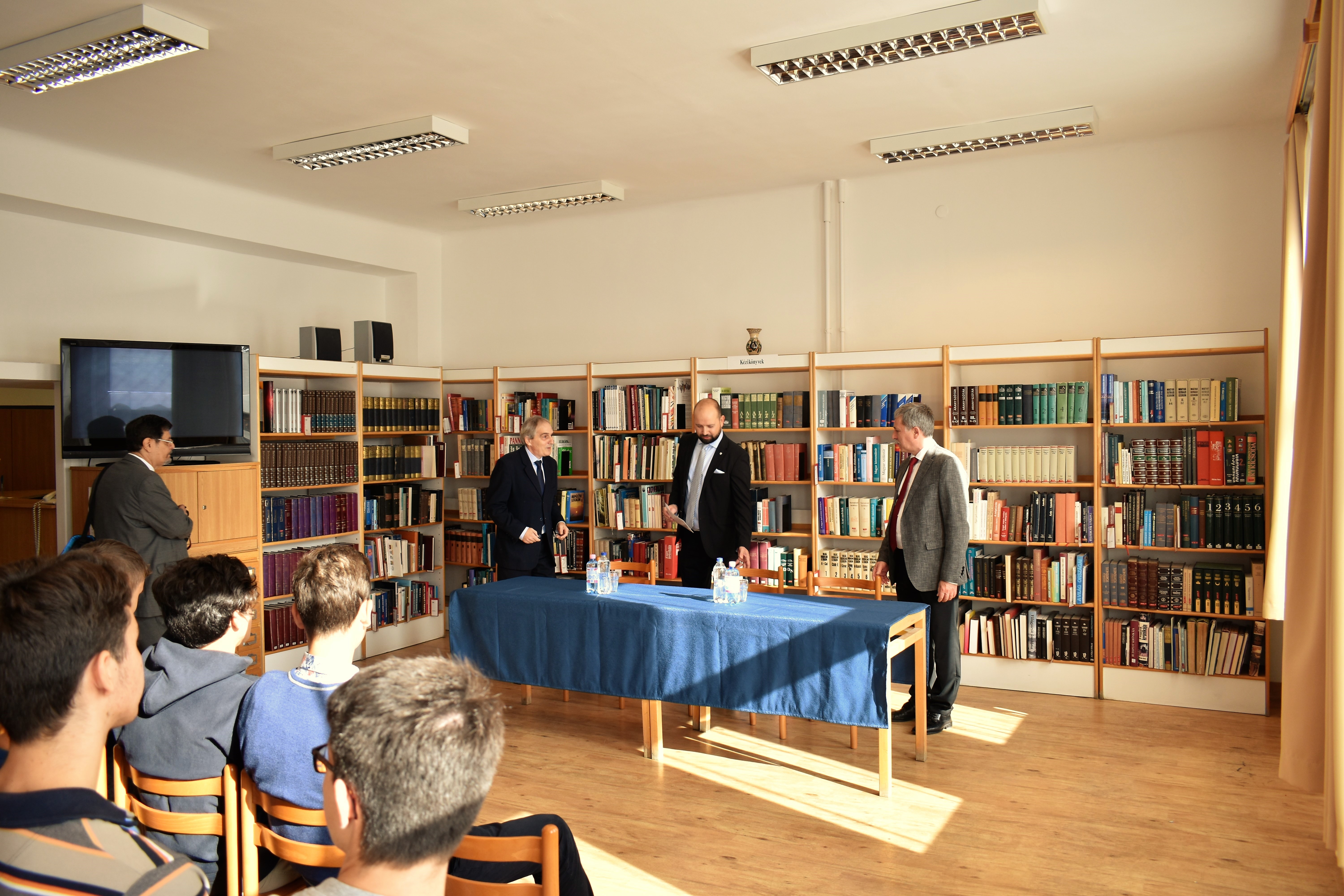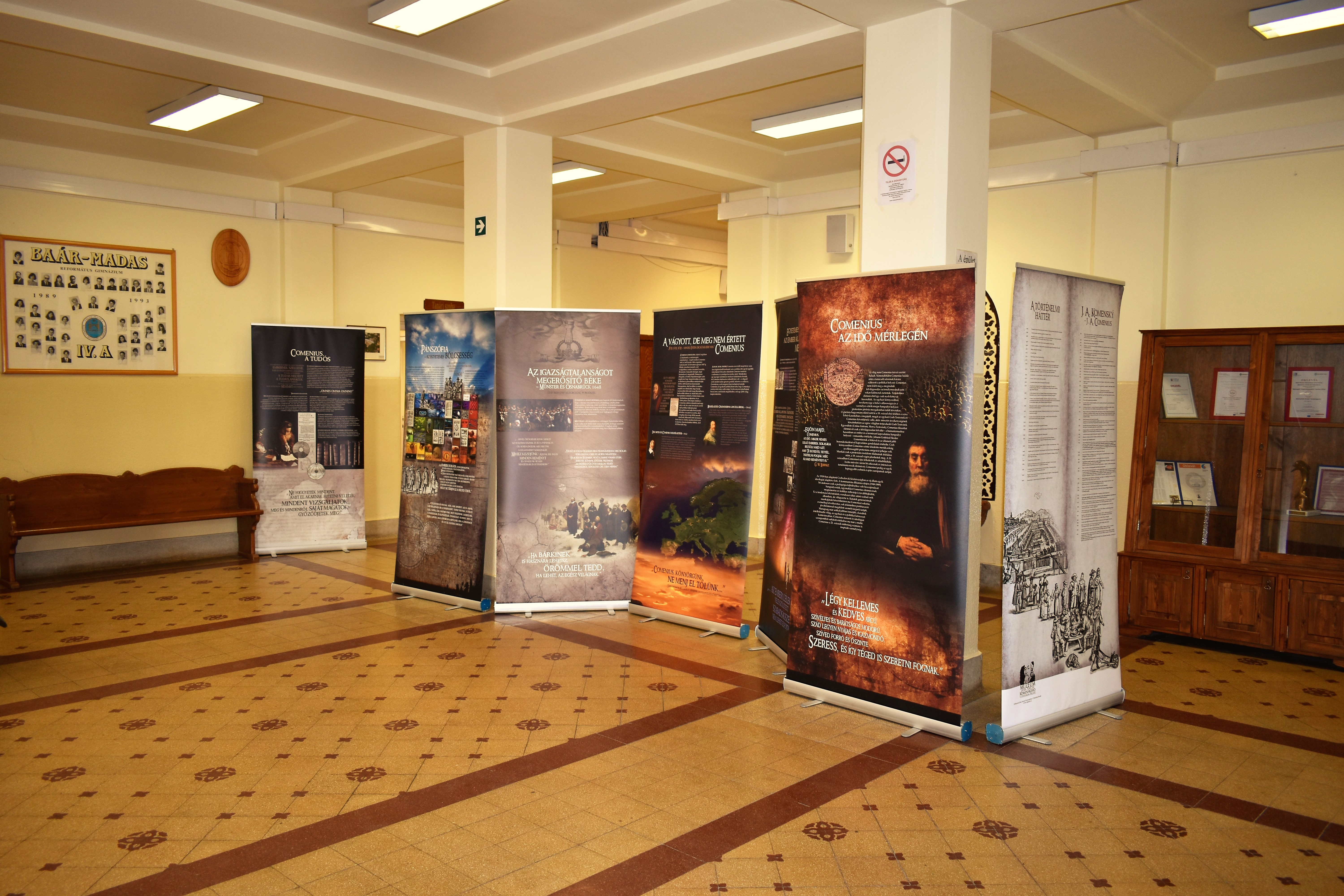„Képzeld el, ma találkoztam a cseh nagykövettel!” – október 14-én a Baár-Madas diákjai közül többen ezzel a hírrel érkezhettek haza otthonukba. S nem is túloztak! Ugyanis a fent említett napon iskolánkba látogatott a Cseh Köztársaság magyarországi nagykövete, Bial Tibor, hogy megnyissa azt a kiállítást, amelyet Jan Amos Komensky (Comenius Ámos János), a XVII. századi zseniális cseh-morva pedagógus tiszteletére – emlékére rendeztek meg. A Nagykövet úr méltatta Comenius nagyságát, pedagógiai újításait, utalt kalandos életútjára; s arra biztatta a megjelenteket, hogy gondosan tekintsék át a kiállítás anyagát. Külön felhívta a figyelmünket a nagyszerű pedagógusnak 1650-54 közötti életszakaszára, amikor I. Rákóczi György erdélyi fejedelem özvegyének Lorántffy Zsuzsannának a meghívására Sárospatakon munkálkodott.