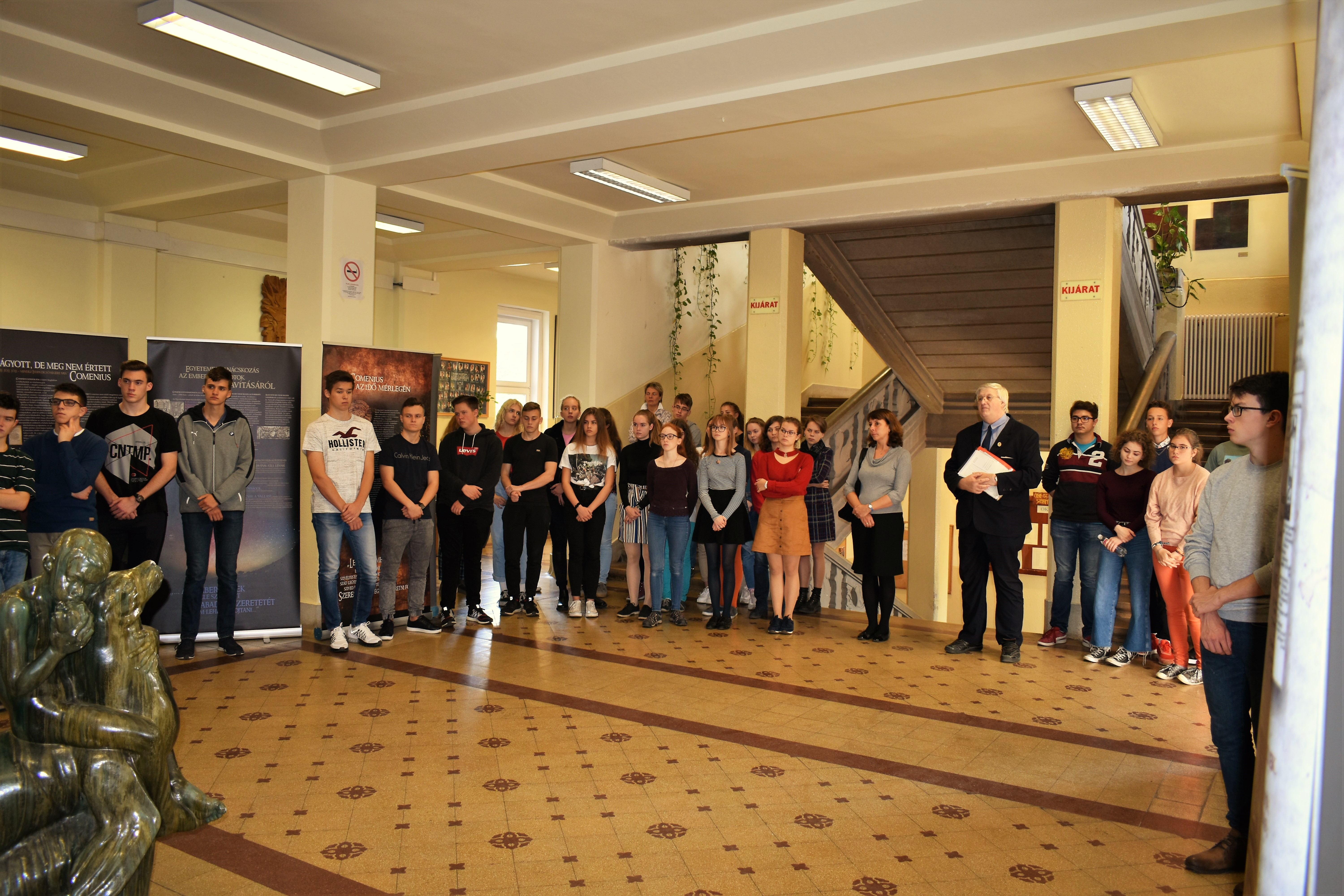 „Képzeld el, ma találkoztam a cseh nagykövettel!” – október 14-én a Baár-Madas diákjai közül többen ezzel a hírrel érkezhettek haza otthonukba. S nem is túloztak! Ugyanis a fent említett napon iskolánkba látogatott a Cseh Köztársaság magyarországi nagykövete, Bial Tibor, hogy megnyissa azt a kiállítást, amelyet Jan Amos Komensky (Comenius Ámos János), a XVII. századi zseniális cseh-morva pedagógus tiszteletére – emlékére rendeztek meg. A Nagykövet úr méltatta Comenius nagyságát, pedagógiai újításait, utalt kalandos életútjára; s arra biztatta a megjelenteket, hogy gondosan tekintsék át a kiállítás anyagát. Külön felhívta a figyelmünket a nagyszerű pedagógusnak 1650-54 közötti életszakaszára, amikor I. Rákóczi György erdélyi fejedelem özvegyének Lorántffy Zsuzsannának a meghívására Sárospatakon munkálkodott.