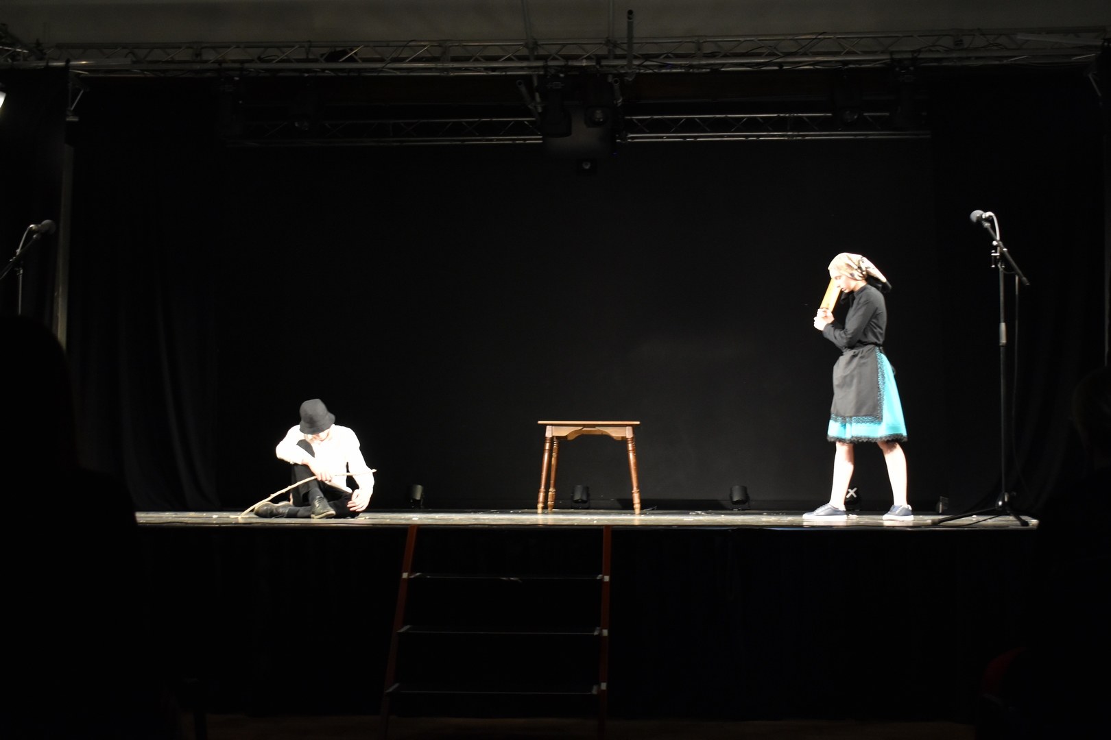 A 9. B-sek egy ősi parasztkomédiával rukkoltak elő, amelyet Illyés Gyula leleményes fokozással, ízes magyar színpadi dialógusokkal dolgozott át A tűvé tevők címmel.