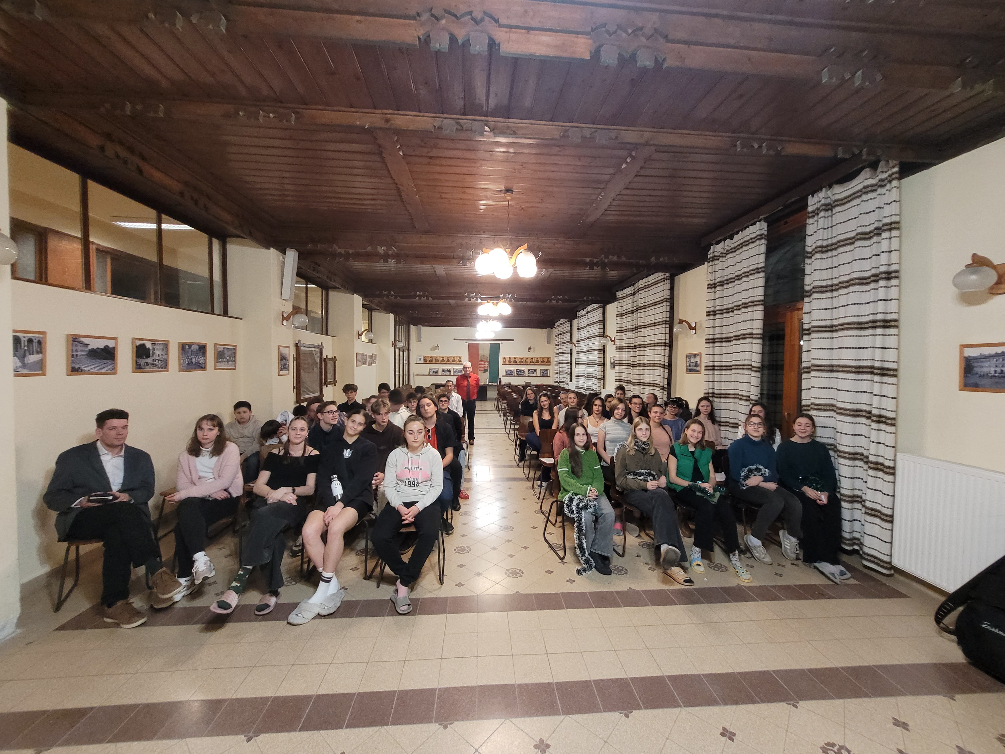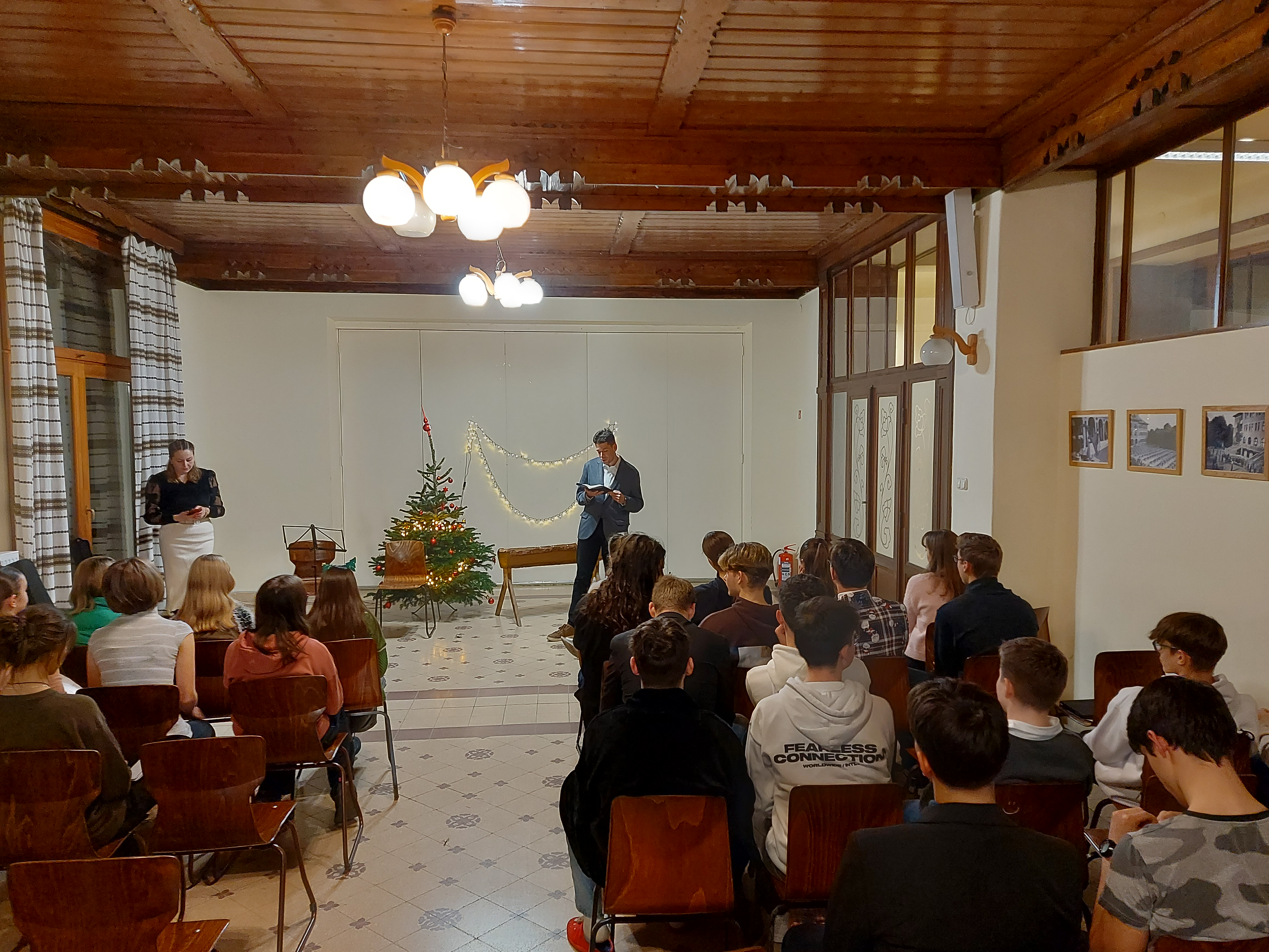 December 18-án, szerda este a kollégium diákjai és tanárai egy ünnepi vacsora után a Díszteremben gyűltek össze a karácsonyi ünnepi műsor előadására. Az ünnepség Dr. Székely Tamás iskolalelkész áhítatával kezdődött, a csecsemőből Megváltóvá váló Isten földi életének két végpontjára emlékeztetve, a barlangistállóra és a barlangsírra. Ezt követően a diákok dicsőítő együttese következett dobbal és gitárral kísért énekkel. A karácsonyi versek mellett a hetedikesek és a végzősök kisebb előadással is készültek, a legidősebbek betlehemese sem maradt el. A magas színvonalú, tartalmas műsort Bihari Andrea tanárnő állította össze és segítette. Az estet kis szeretetvendégség és jókedvű beszélgetés zárta.