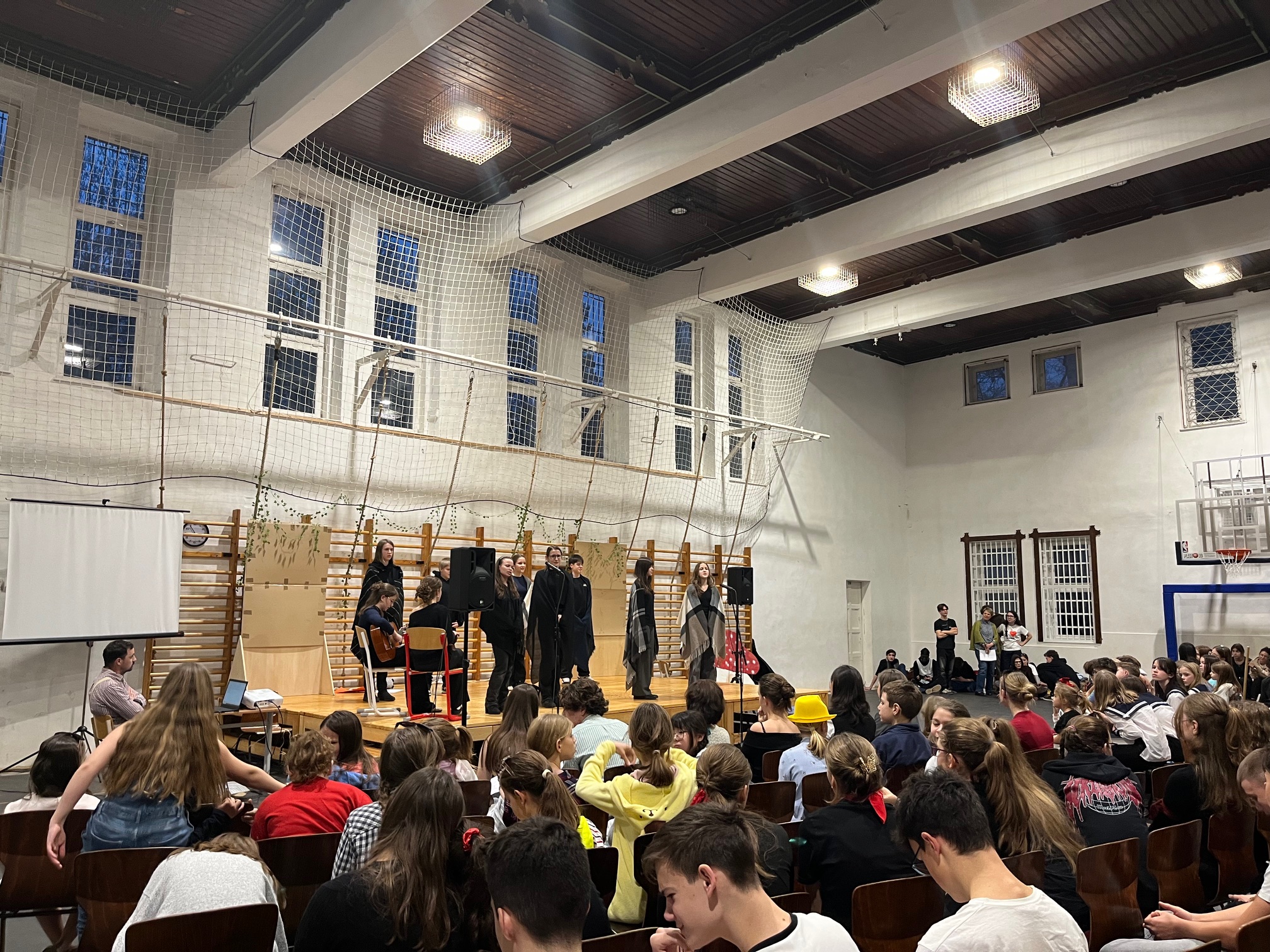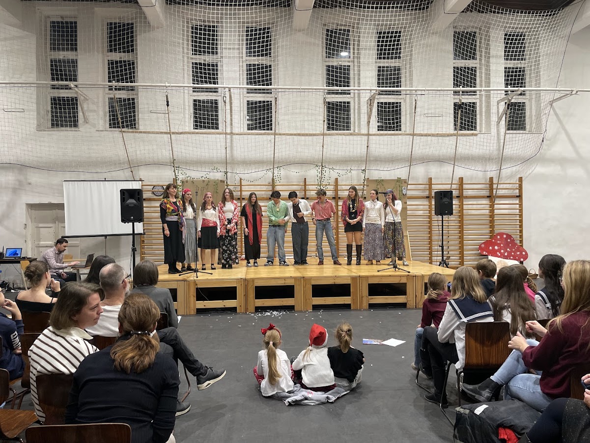 Kicsik és nagyok, első idegennyelvesek és második idegennyelvesek egyaránt lelkesen kapcsolódtak be a feladatba, és remek előadások, koreográfiák születtek a közönség nagy-nagy derültségére.