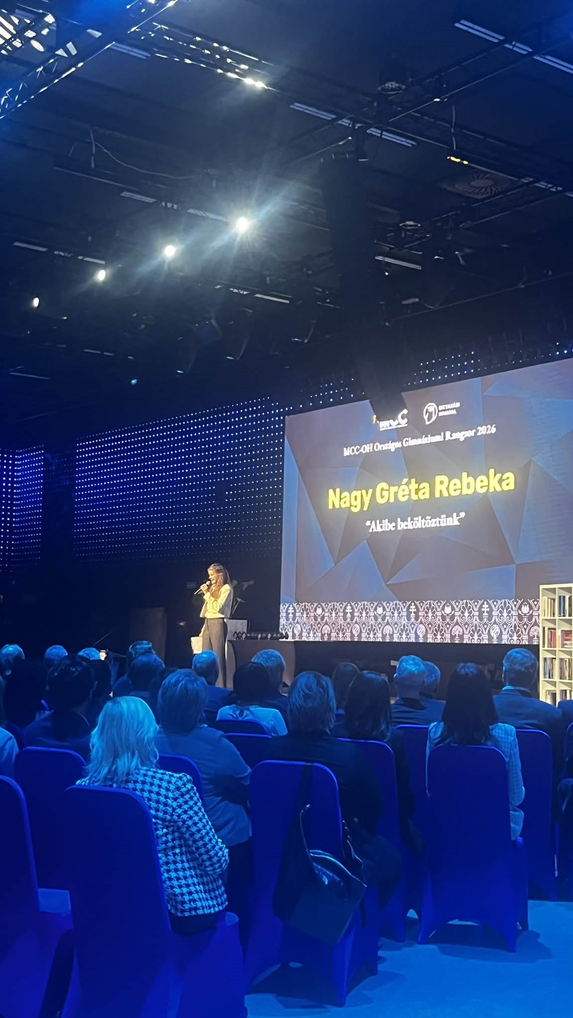 A díjátadó gála első programjaként Nagy Gréta 12.b osztályos tanulónk – az MCC irodalmi, művészeti folyóiratának a KárPit-nak, szerkesztője – mondta el novelláját a több száz fős hallgatóság előtt, nagy sikerrel.