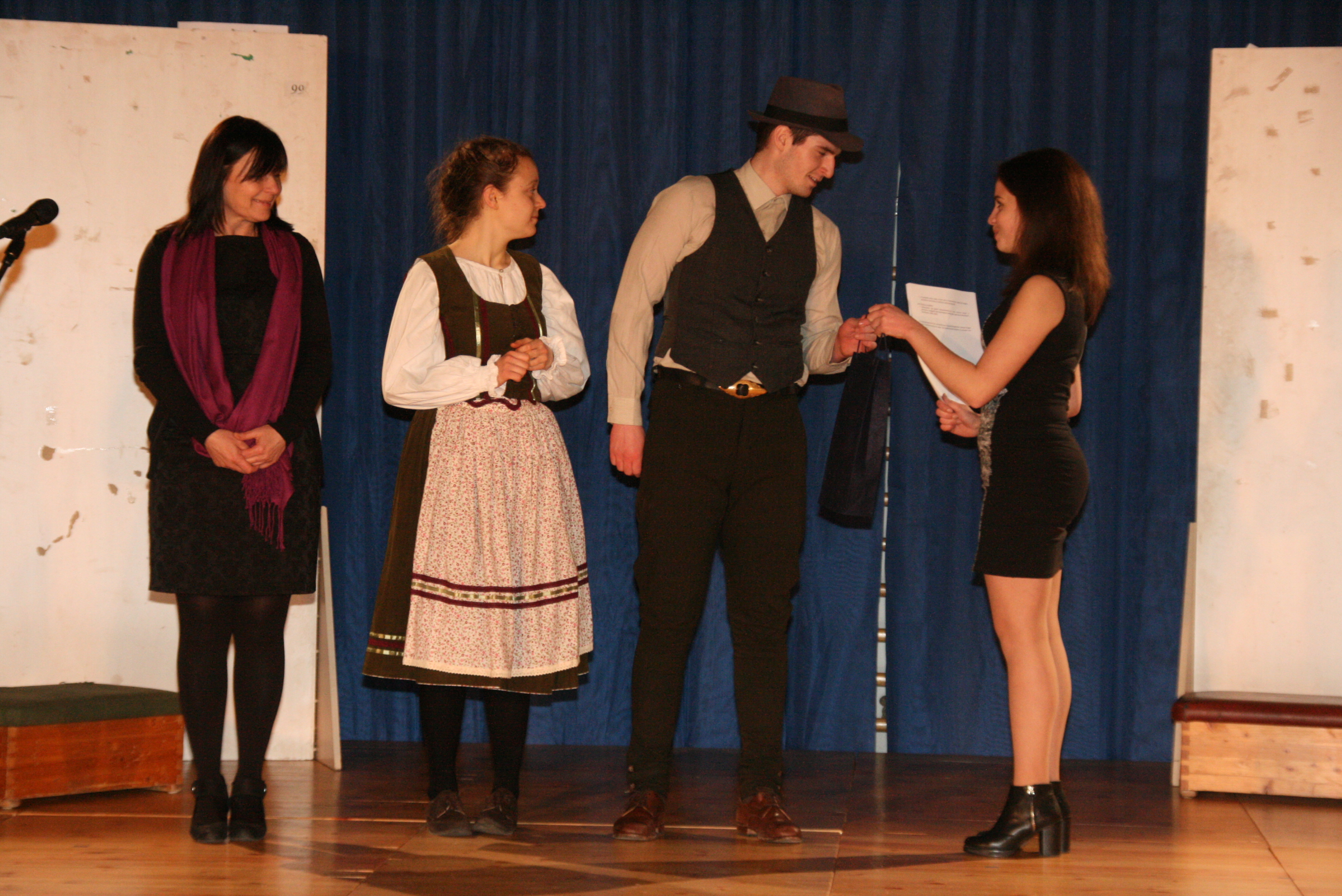 Tudjuk, mi egy átjáróház: egyik helyről a másikra vezet. Miért ne létezhetnének olyan épületek, amelyekben egy bizonyos ajtón átlépve nem csak más helyre, de más időbe is kerülünk? A Társulat, iskolánk színjátszó köre most különleges időutazásra invitálta a nézőket. Az önszerveződés esetükben egészen meglepő tényekkel szolgált: nem elég, hogy diák tanította be a darabot, magát a darabot is diák írta A mű szerzője és betanítója: Kneipp Virág, 12. b osztályos tanuló. Ősbemutató volt ez a javából, és drámaszerzőt avathattunk.