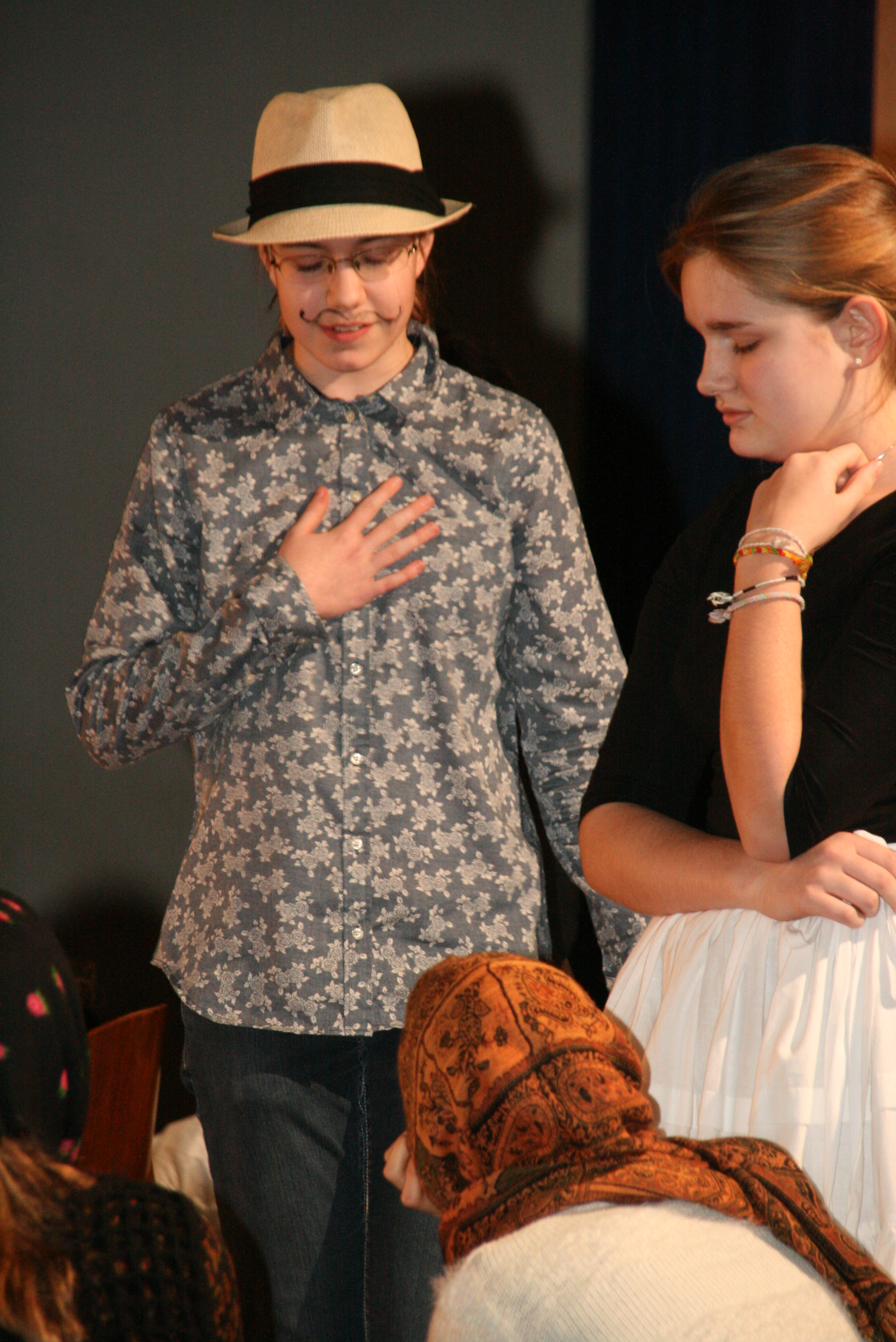 Tudjuk, mi egy átjáróház: egyik helyről a másikra vezet. Miért ne létezhetnének olyan épületek, amelyekben egy bizonyos ajtón átlépve nem csak más helyre, de más időbe is kerülünk? A Társulat, iskolánk színjátszó köre most különleges időutazásra invitálta a nézőket. Az önszerveződés esetükben egészen meglepő tényekkel szolgált: nem elég, hogy diák tanította be a darabot, magát a darabot is diák írta A mű szerzője és betanítója: Kneipp Virág, 12. b osztályos tanuló. Ősbemutató volt ez a javából, és drámaszerzőt avathattunk.