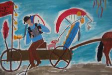 A második fordulóban a versenyen kapott szobrok újraértelmezésével /parafrázis/ kellett akvarell technikával képet festeni.