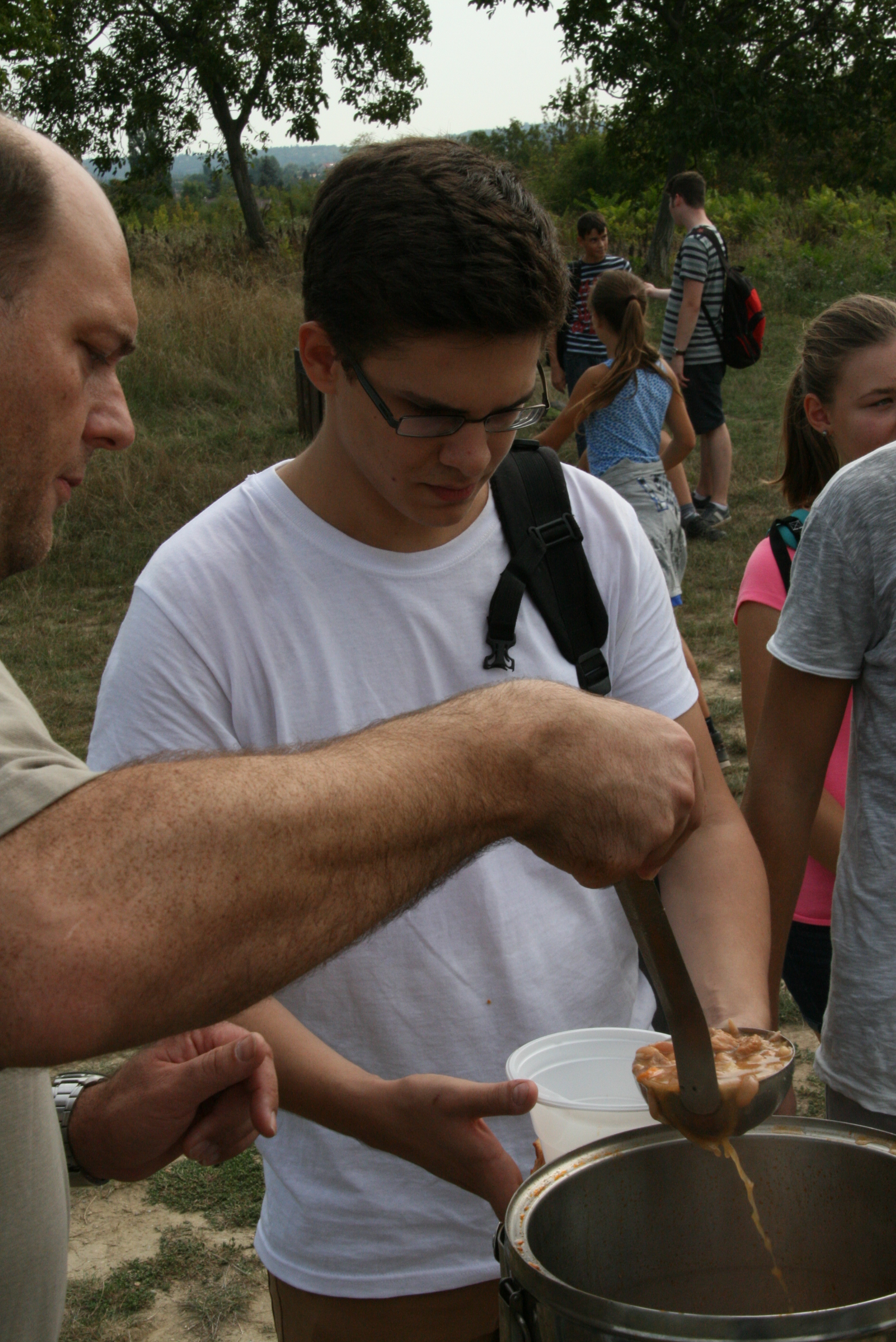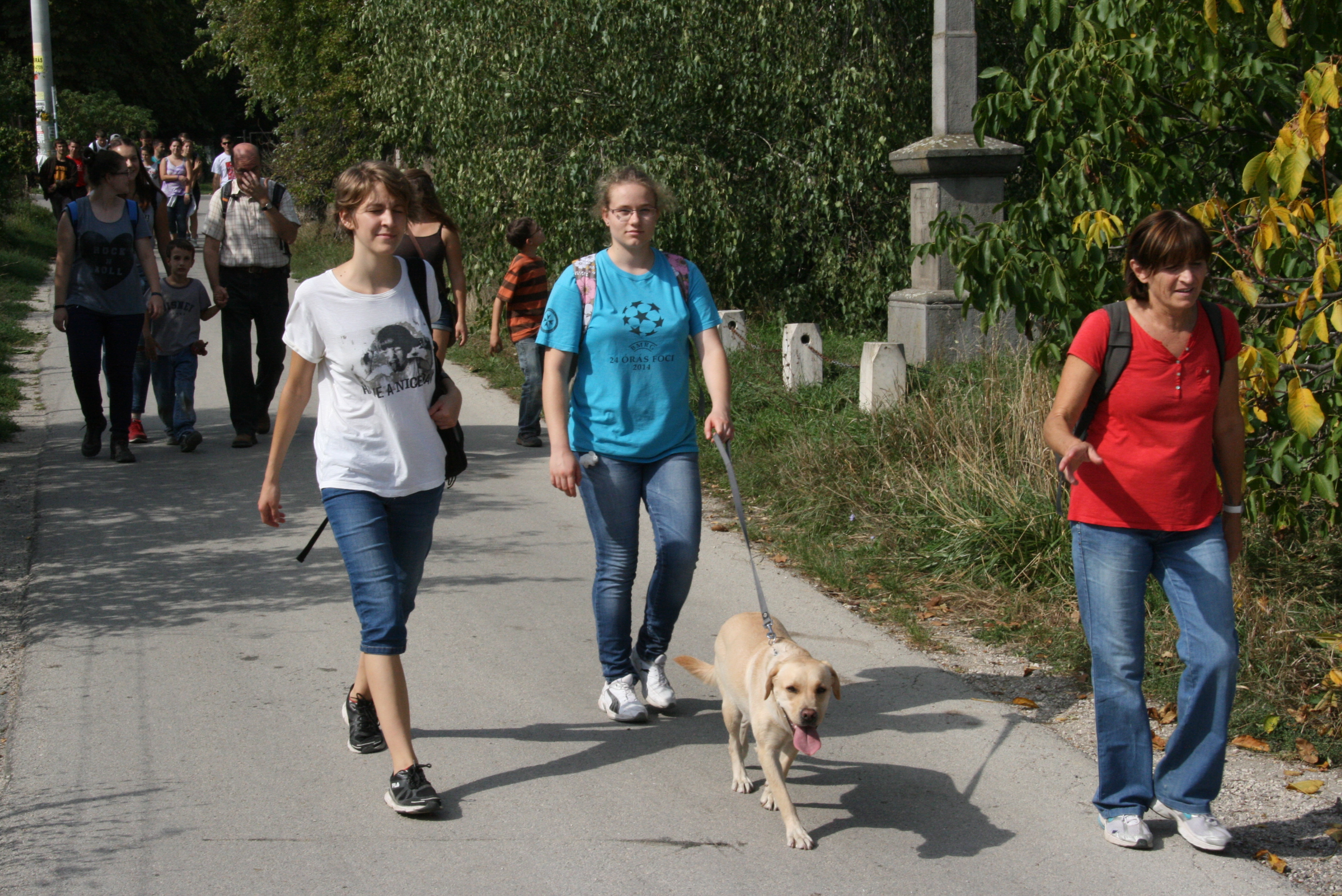 Idén a leghosszabb, „Csak teljesítményőrülteknek” hirdetett útvonal senkinek nem mozgatta meg a fantáziáját, így a leghosszabb táv 13,8 km, volt, melyet egyedül a 11b választott. Mégis az első osztályok között érkeztek meg Pomáz szélére, ahol már ott volt a „fogadóbizottság”: Tombor László igazgató úr a nyilvántartásával, hisz a túra az „Egy Baárkában evezünk” pontgyűjtő verseny első eseménye volt, és Süveges István karbantartónk, aki a konyhások –szokás szerinti– remekét, a 350 adag babgulyást fuvarozta.