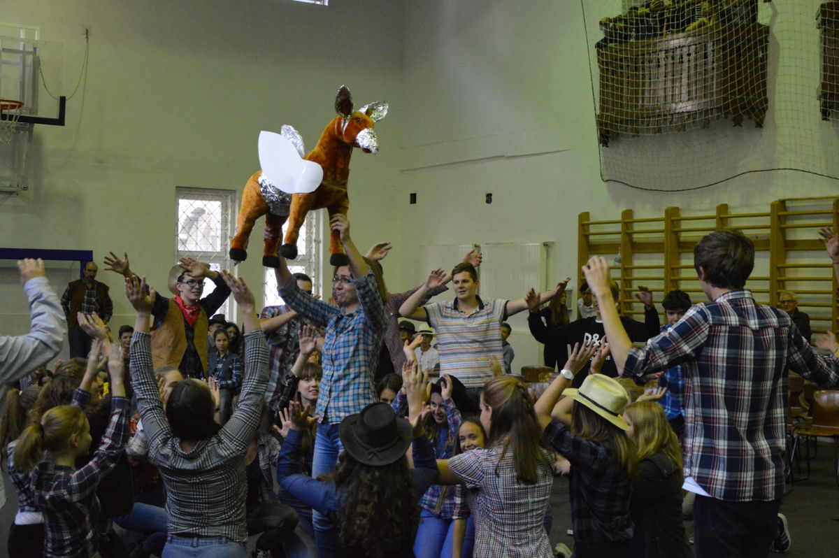 A gólyahét nyertese a 7.b osztály lett, utána következett a 9.c, majd a 9.d zárta a sort. Természetesen erről a versenyzők oklevelet is kaptak. A gólyabál viszont egy kicsit módosította az állást, így az ajándékokat a bálon nyújtott teljesítmények alapján osztottuk ki. Az eredmény a következő lett: a harmadik helyet szerezte meg a 9.d, második lett a 7.b és a nyertes a 9.c osztály lett. Két különdíjat is biztosítottunk: a legfinomabb sütiért járó és a leglelkesebb osztálynak járó oklevelet.