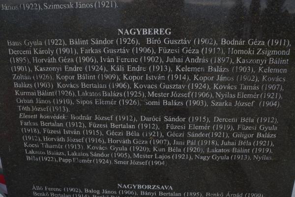 A következő megállónk Beregszászon volt, ahol megkoszorúztuk az ottani Petőfi-szobrot és sétáltunk a Kossuth-téren. Nagybereg felé menet még megkoszorúztunk egy 1956-os emlékművet is.